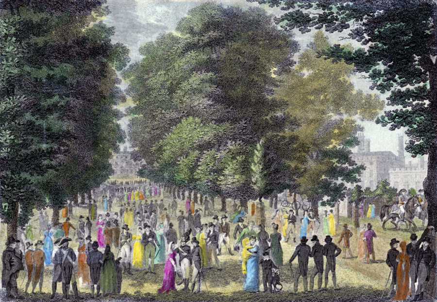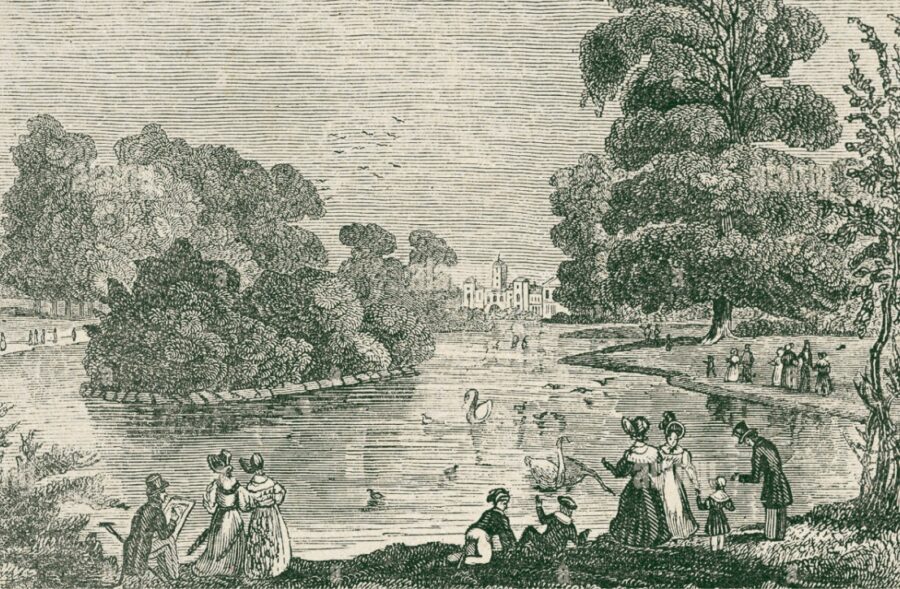 The park becomes home to camels, crocodiles, elephants, and exotic birds, housed within the Royal Menagerie and Aviary. Birdcage Walk is named after this era.