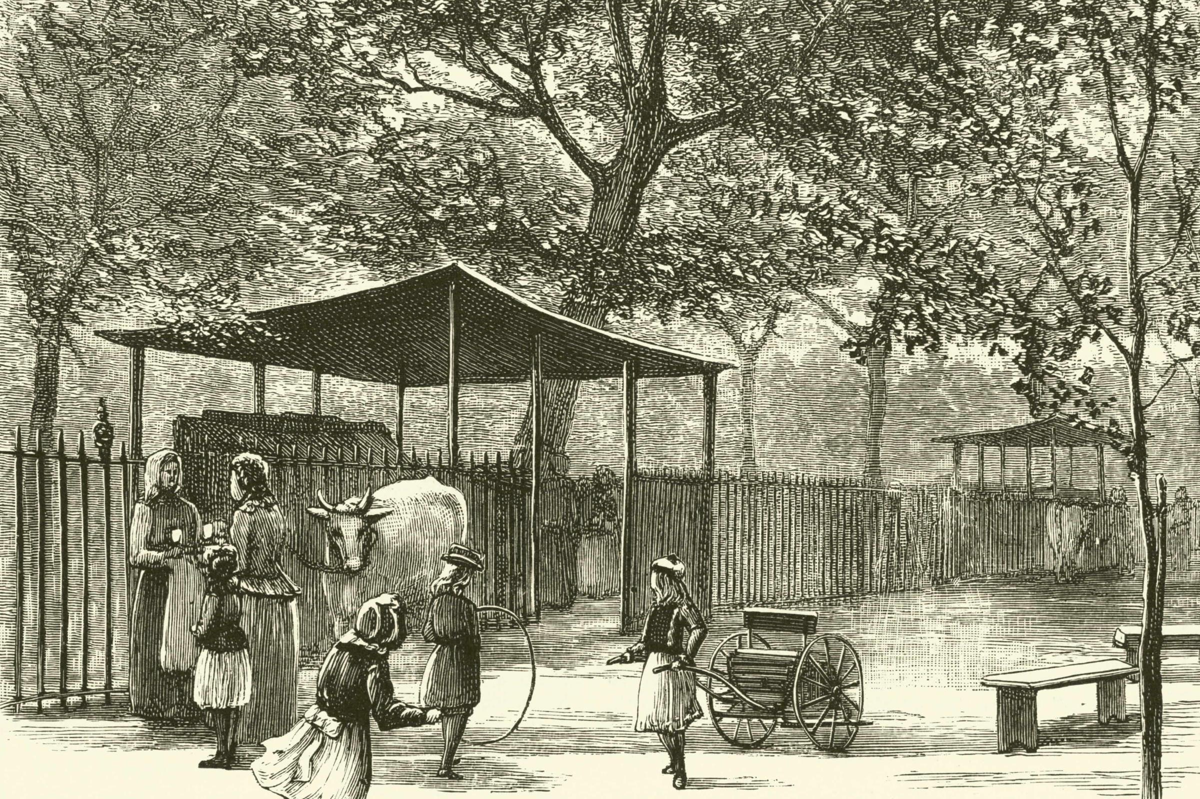 Cows begin to graze over the parkland, reflecting its use as a pastoral space.